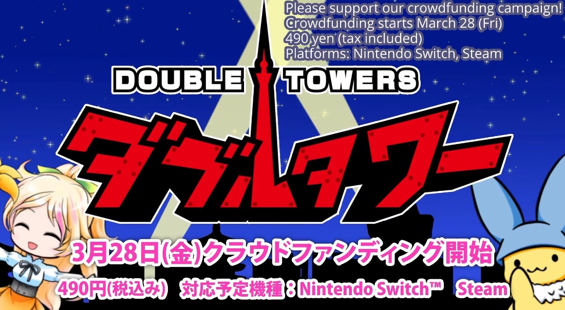 @mooniitani3分でストレス発散ゲーム #ダブルタワー クラファン応援体験版、限定100本、 100円のPVです。 youtu.be/y40AigE-AMo 購入サイトは ▼Base ▼BOOTH です。
