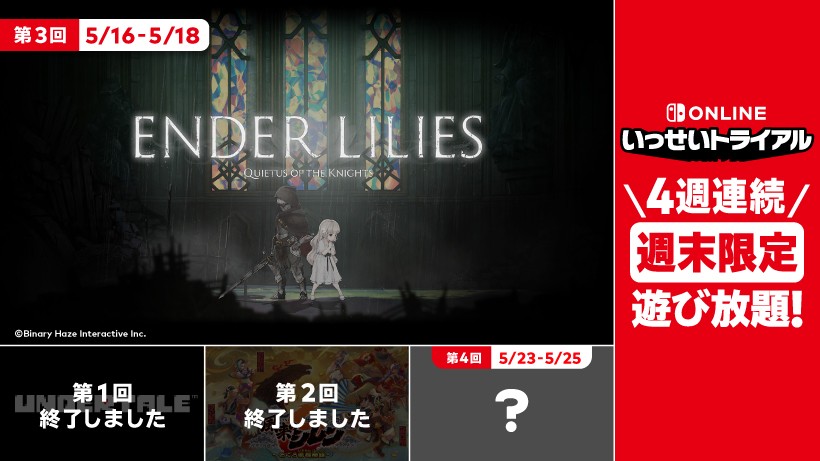 『エンダーリリーズ』が4週連続“いっせいトライアル”第3回の対象に。期間は5月16日12時~18日17時59分まで。少女と騎士の探索アクションRPG Nintendo Switch Online加入者限定イベント“いっせいトライアル”が4週連続“週末限定”で開催中。週替わりで対象のゲームが遊び放題となっている。 (出典:ファミ通.com) |