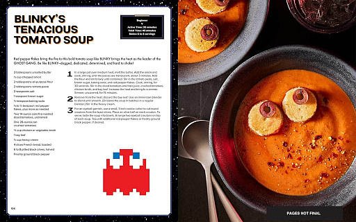 パックマンの形をピザ生地で再現した「PAC-MAN PEPPERONI PIE」やトマトスープで真っ赤なブリンキーを再現した「BLINKEY’S TENACIOUS TOMATO SOUP」などはパックマンのゲームを彷彿させる見た目でインパクトがありますね。