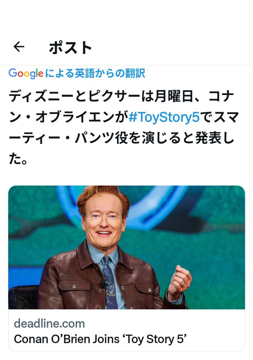 @spikenokakuregaコナン・オブライエン 『トイ・ストーリー5』で スマーティーパンツ(👉️)の声を演るとの事 マルちゃん人形の元祖らしい😳 pic.x.com/V1KKKksgVx x.com/DEADLINE/statu…