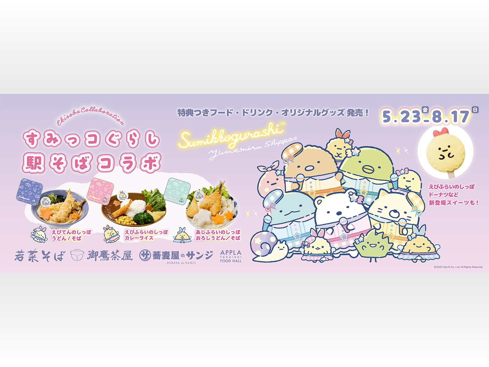 関西でしか出合えない!「すみっコぐらし×駅そば」コラボ、愛らしいメニューが登場 …鷹茶屋」「蕎麦屋のサンジ」「アプラたかいし」計14店舗にて。 『すみっコぐらし 駅そばコラボ』期間:2025年5月23日(金)~2025年8月17日(… (出典:Lmaga.jp) |