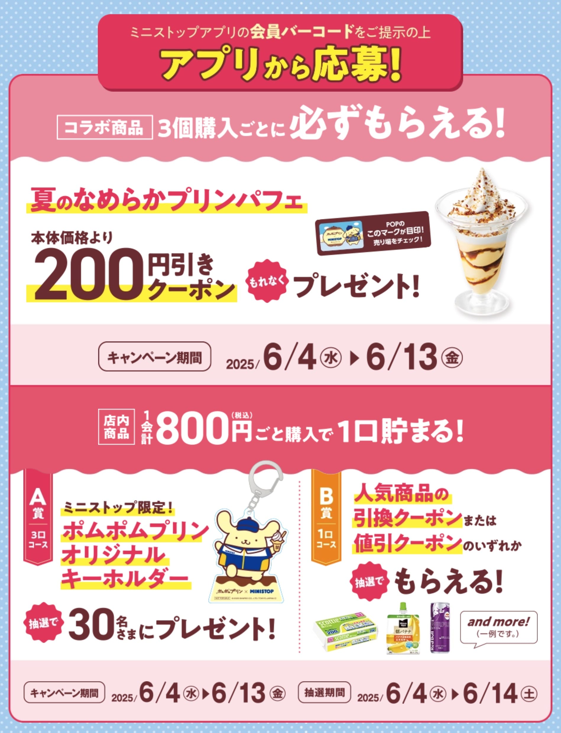 @ministopfan明日から『#ポムポムプリン』と #ミニストップ のコラボ企画が開始ミミ~♪ 朝10時から夏のなめらかプリンパフェをお買い上げの皆さまに、 ミニストップ限定ポムポムプリンオリジナルシールをプレゼント! 各店先着30名さま限定!僕もいるからぜひチェックしてネ #サンリオ pic.x.com/w56b8eYTHW